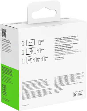 Belkin Väggladdare GaN 3x USB-C 67W PD Vit