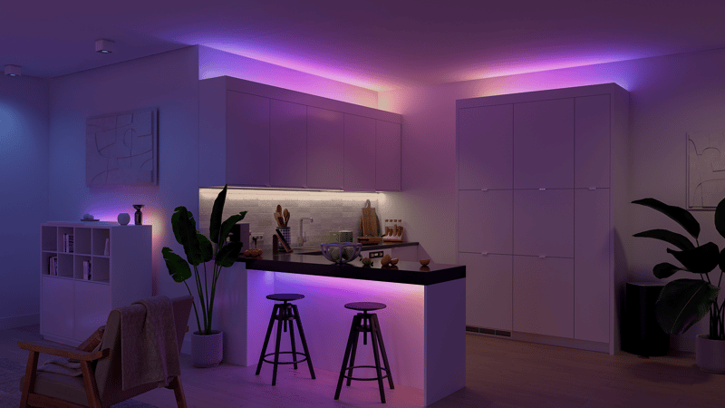 Med en total längd på 5 meter täcker Hue Essential LED list större ytor direkt ur förpackningen. Den kan klippas till önskad längd för att passa exakt där du vill installera den, vilket ger en mer exakt och diskret montering.
