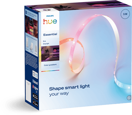 Hue Essential LED list integreras med Hue-appen där du styr ljusstyrka, färg och scener i realtid. Du kan skapa scheman och automationer som tänder eller släcker belysningen vid bestämda tider, eller anpassar ljuset efter din dagliga rutin.