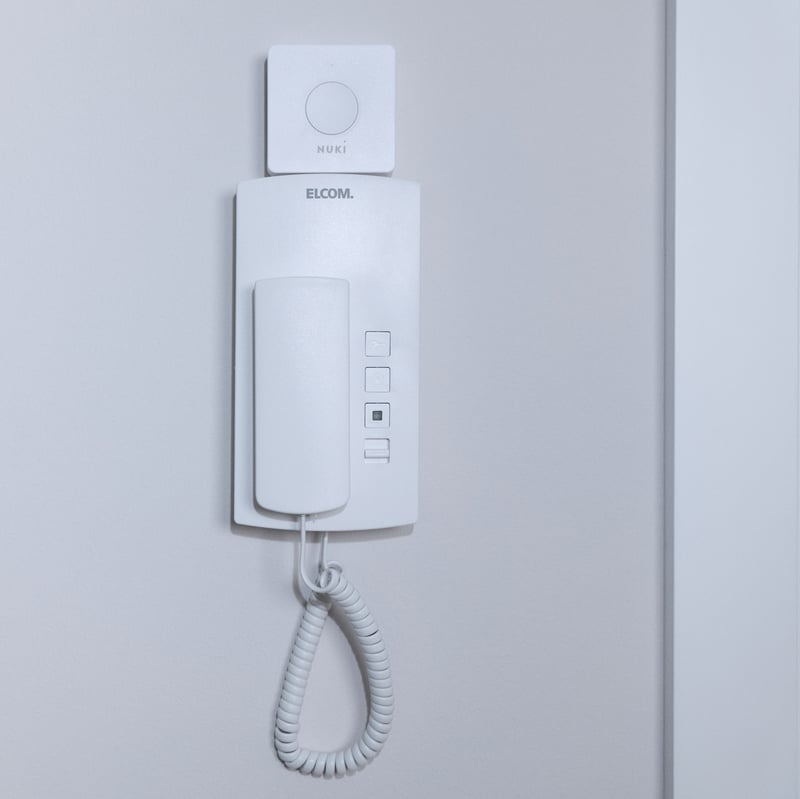 Nuki Opener gör ditt porttelefonsystem smart och möjliggör nyckelfri åtkomst till din lägenhet. Få din byggnads huvudentré att öppnas automatiskt när du kommer hem – helt enkelt genom att ringa på dörrklockan – eller öppna den i Nuki-appen.