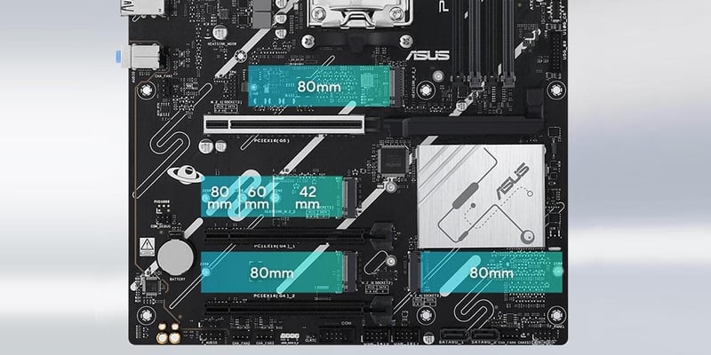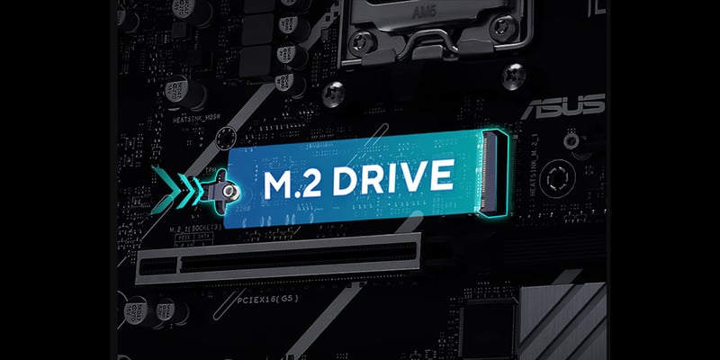 PRIME X870-P har totalt fyra M.2-platser, varav en med stöd för dataöverföringshastigheter på upp till 128 Gbps via PCIe 5.0, två med stöd för 64 Gbps via PCIe 4.0 och en med stöd för PCIe 3.0. Detta möjliggör snabbare uppstart och appladdningstider med OS- eller applikationsenheter.3