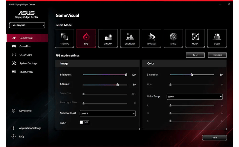ROG-exklusiv OLED Anti-flicker-teknik har tre uppdateringsfrekvensområden (Strong / Middle / Off) för att minska flimmer under uppdateringsfrekvensfluktuationer för att upprätthålla uppslukande spelupplevelser.