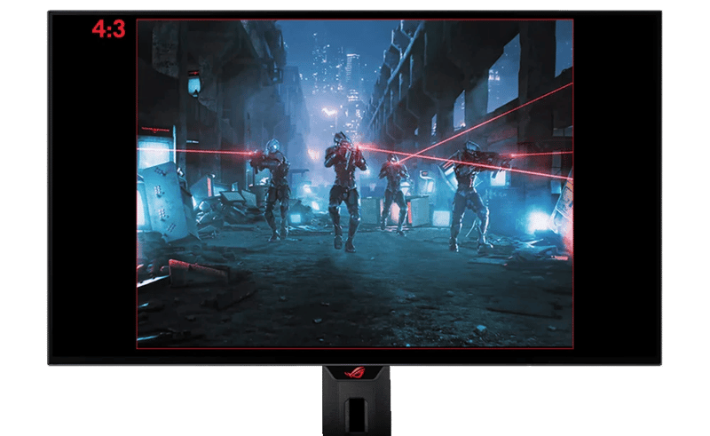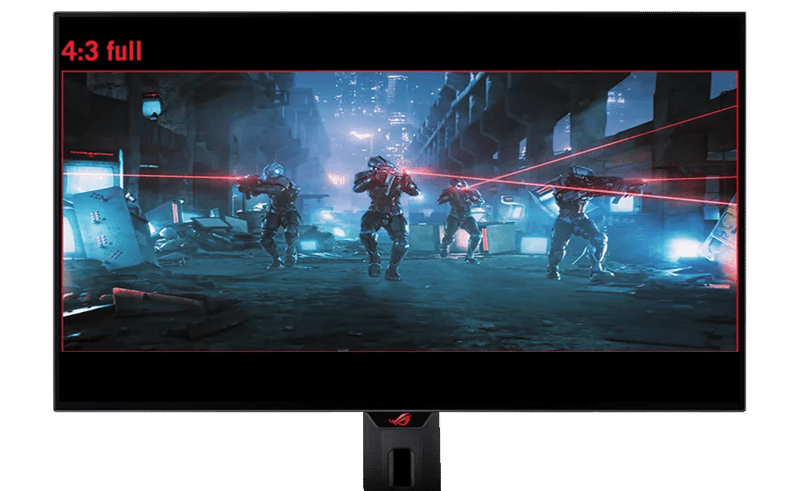 För spelare som vanligtvis använder mindre skärmar kan XG27AQDMG visa en 24,5-tumsbild, en bild i bildförhållandet 4:3 eller en fullskärmsbild i bildförhållandet 4:3 med djupsvarta OLED-kanter runt bilden. För FPS-spelare gör spel på en fullskärmsbild i 4:3-format att mål eller karaktärsmodeller i spelet ser något större ut, vilket gör dem lättare att träffa.
