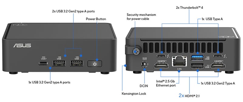 Minimera stilleståndstiden med ASUS NUC 15 Pro, som har en innovativ gångjärnsdesign som möjliggör snabba och bekväma RAM- eller lagringsuppgraderingar. Dess extra interna huvuden och expansionstillbehör gör det möjligt för användare att anpassa sin NUC för alla affärsbehov.
