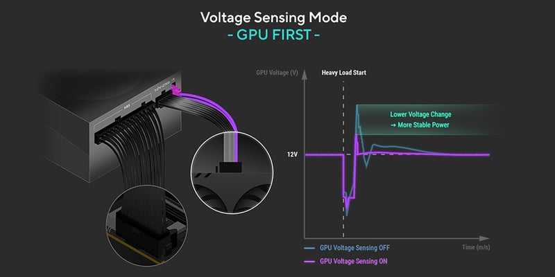 Pair with the ROG Strix Platinum Series PSU and enjoy reliable power for your graphics card. GPU-First enhances voltage stability by up to 45%, even during demanding gaming sessions and overclocking scenarios, helping to ensure peak performance for a more consistent gaming experience. Additionally, the integration of a GaN MOSFET boosts power efficiency by up to 30%.