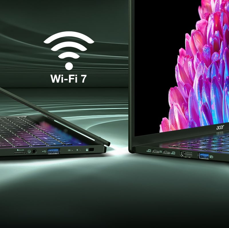 Swift Edge 16 har en mängd anslutningsmöjligheter, inklusive Wi-Fi 6E med förbättrade hastigheter, ultralåg latens på under 2 ms och multilänkfunktion för en mer pålitlig och sömlös trådlös anslutning.