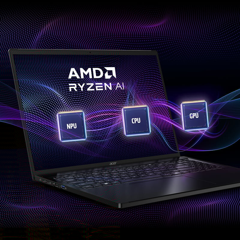 Med inbyggd AMD Ryzen AI är Swift Edge 16 AI PC utrustad med en dedikerad AI-motor som skryter med 60 % förbättrad AI-prestanda och i kombination med Acers egna AI-lösningar är den redo att inleda framtiden med mer intuitiva och roliga AI-upplevelser.