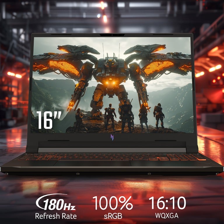 Den 16-tums WUXGA-skärmen med 180 Hz uppdateringsfrekvens och 100 % sRGB-noggrannhet, erbjuder färgrika, jämna bilder som förbättrar både spel och kreativa uppgifter.