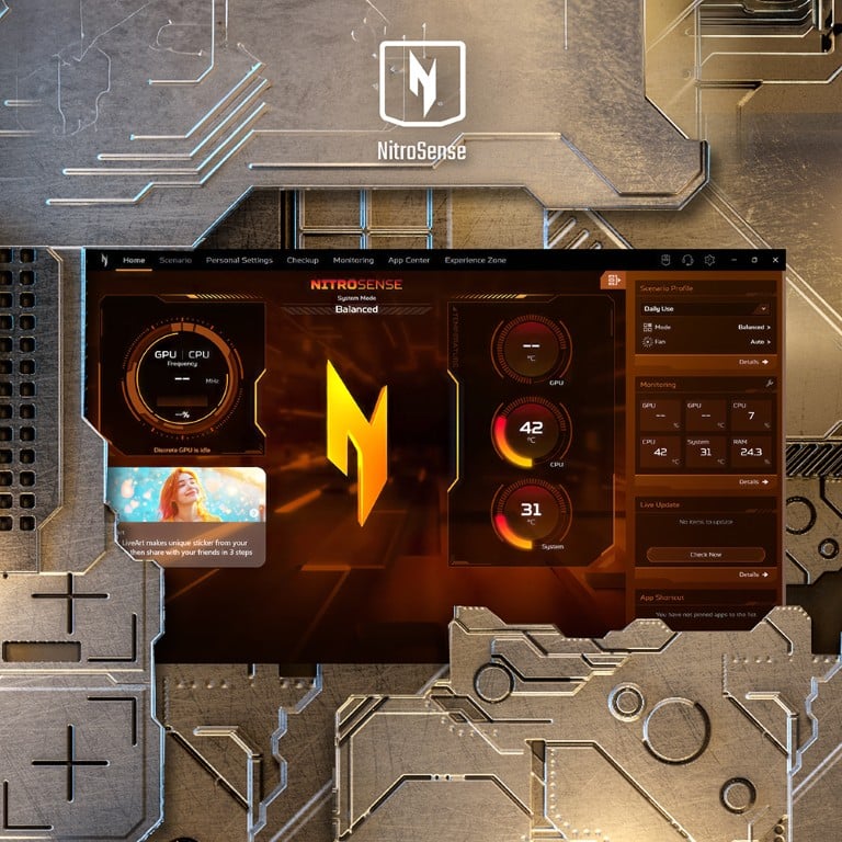 Med NitroSense™ kan du övervaka enhetens prestanda i realtid och finjustera fläkthastigheterna för optimal kylning. Få tillgång till Experience Zone för att låsa upp en rad AI-drivna appar, vilket förbättrar både produktivitet och kreativitet för en smidigare och trevligare upplevelse.