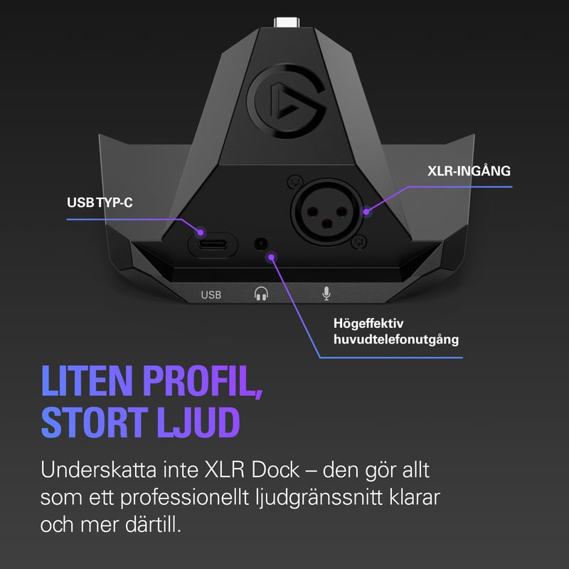 - USB-C, XLR, 3.5mm Hörlursuttag