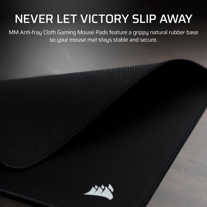 CORSAIR MM Anti-fray Cloth gamingmusmatta finns i flera storlekar, vilket gör det enkelt att anpassa efter skrivbordsyta och användningsområde. Mindre modeller passar kompakta arbetsytor, medan större varianter ger utrymme för både tangentbord och breda musrörelser – särskilt uppskattat i gamingmiljöer.