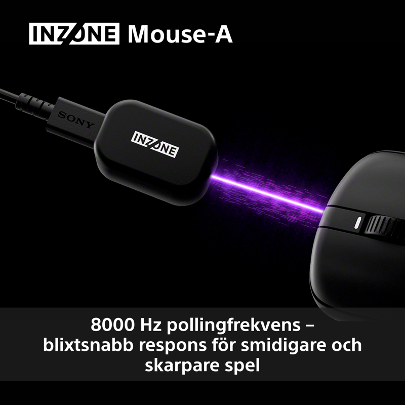 När varje millisekund räknas levererar INZONE Mouse-A. Med en blixtrande pollingfrekvens på 8000Hz, åtta gånger snabbare än vanliga spelmöss, fångar den dina inmatningar med ultralåg latens och omedelbar respons. Rörelserna återges på skärmen med exakt timing för smidigare spårning och skarpare feedback, så att din mus reagerar i samma ögonblick som du gör det.