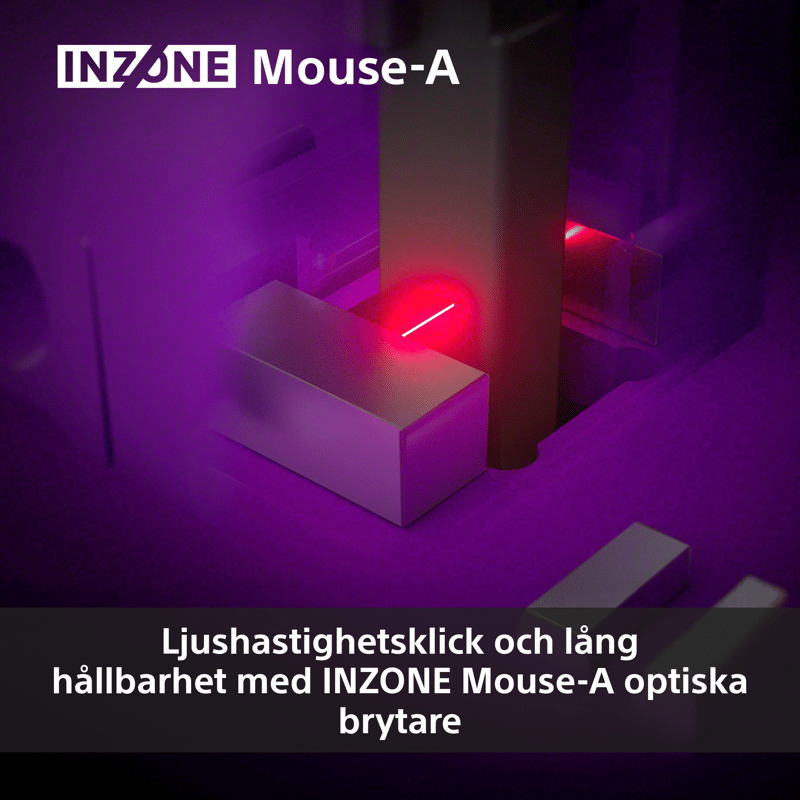 INZONE Mouse-A använder optiska knappar för ultrasnabba och pålitliga klick. Utan mekaniskt slitage och utan fördröjning vid avstudsning registreras klick vid ljus, inte friktion, vilket ger precision och hastighet varje gång. Oavsett om du använder snabba förmågor eller tar headshots, känns varje tryck skarpt och omedelbart. INZONE Mouse-A är byggd för långvarig användning och sätter en ny standard för hållbarhet.