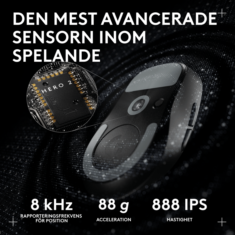 HERO 2-sensorn i denna PC-gamingmus erbjuder oöverträffad prestanda med: