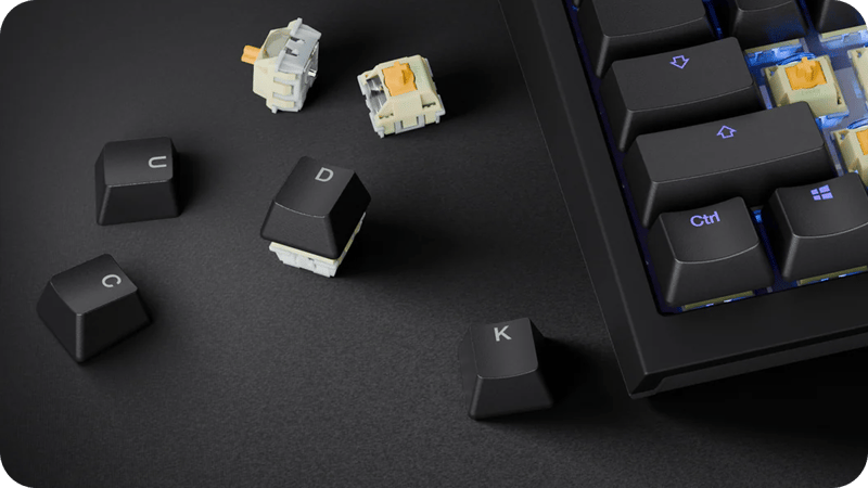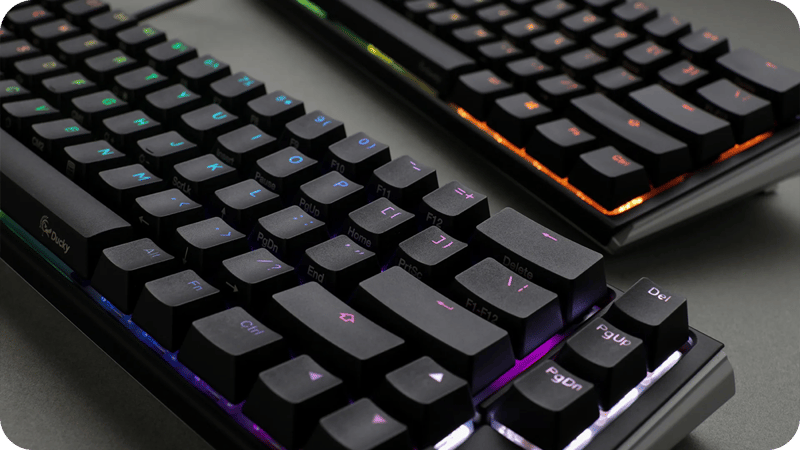 En av Duckys tydligaste kvalitetsmarkörer är användningen av double-shot PBT-keycaps. Dessa är betydligt mer slitstarka än traditionella ABS-tangenter och behåller både struktur och färg även efter lång tids användning. Det gör Duckys tangentbord till en långsiktig investering för dig som använder ditt tangentbord dagligen.